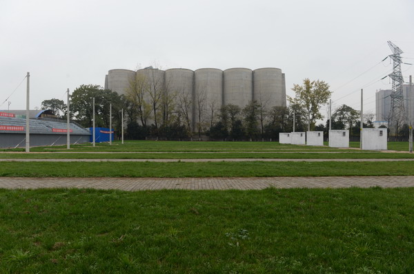 该场地农网运检专业团体技能项目使用场地。现场共有8个工位(7备1),7个为竞赛用工位,1个为备用工位。每个工位自东向西依次为1#、2#、3#杆,组成一个耐张段,场地电杆采用拔梢砼杆Φ190×10米,电杆埋深2米,底部设置半径2.5米、深0.3米细砂坑,耐张段长度为76米。1#杆(东边)为电源侧,拉线已经安装完毕,参赛选手安装低压横担(1.5米双横担)。2#杆(中)为直线杆,参赛选手在2#杆上安装直线横担及接户线(B、N单相)。3#杆为低压段杆,拉线已经安装完毕,参赛选手安装终端横担,并紧线。用户的接户线墙,墙高2.7米,宽3米,与线路方向平行布置,距2#杆6米,用户侧第一支撑物门型架距地面2.5米,已安装完毕,计量箱距地1.8米已安装完毕。此项目可完成相关工种人员技能培训、技能鉴定工作及各类技术比武、竞赛等工作。