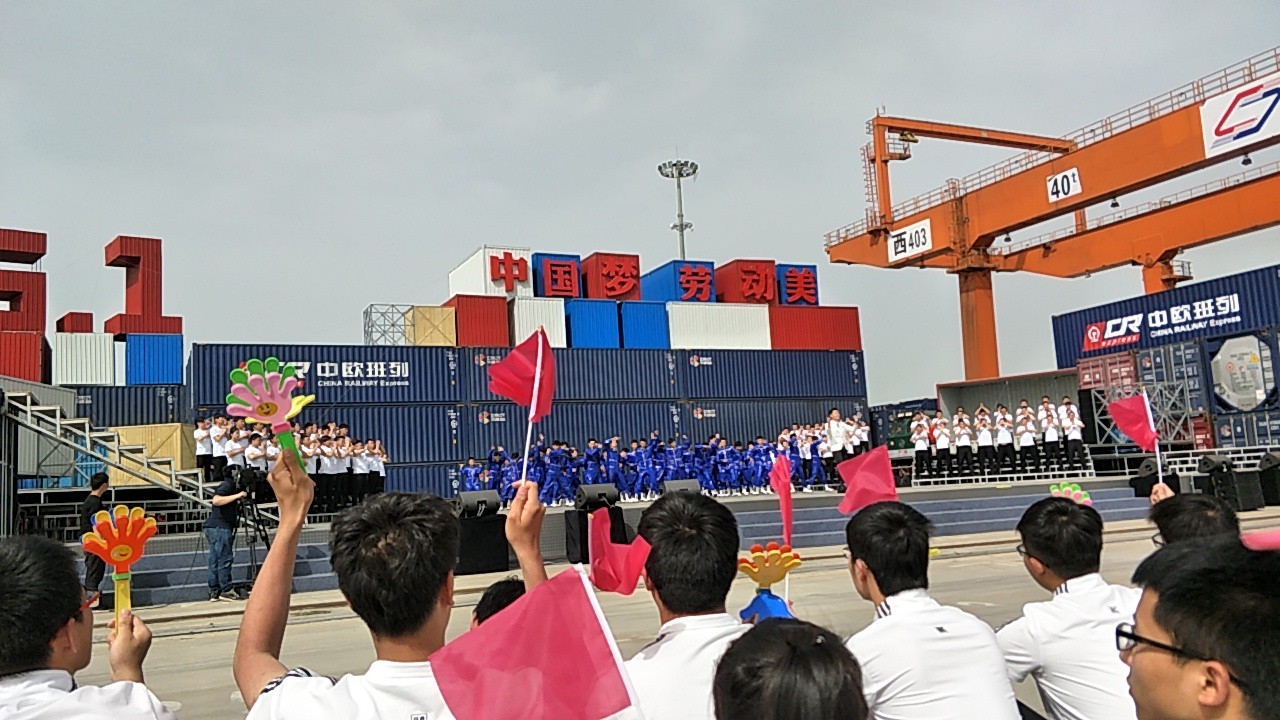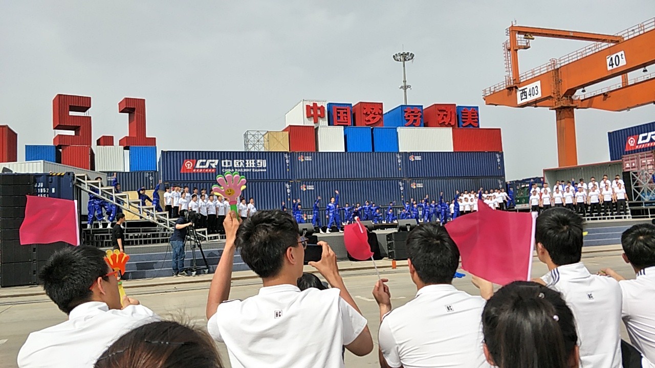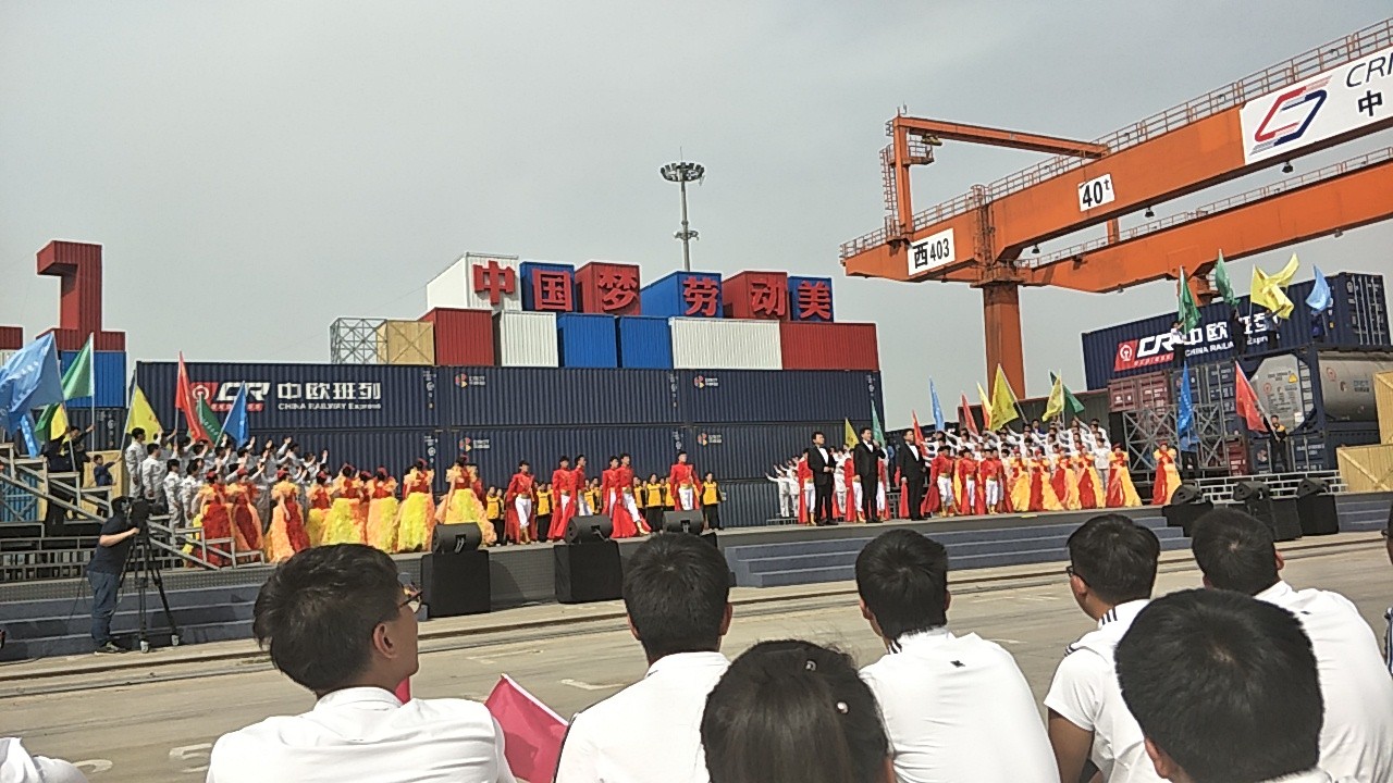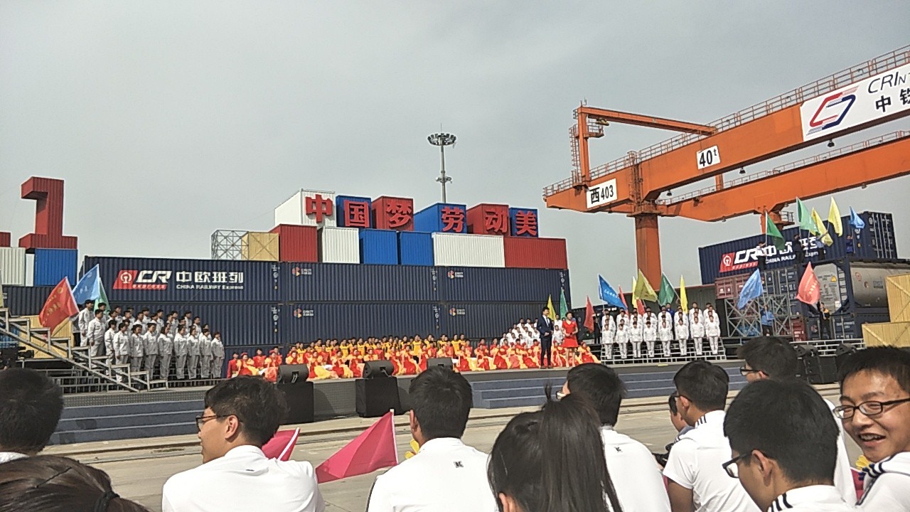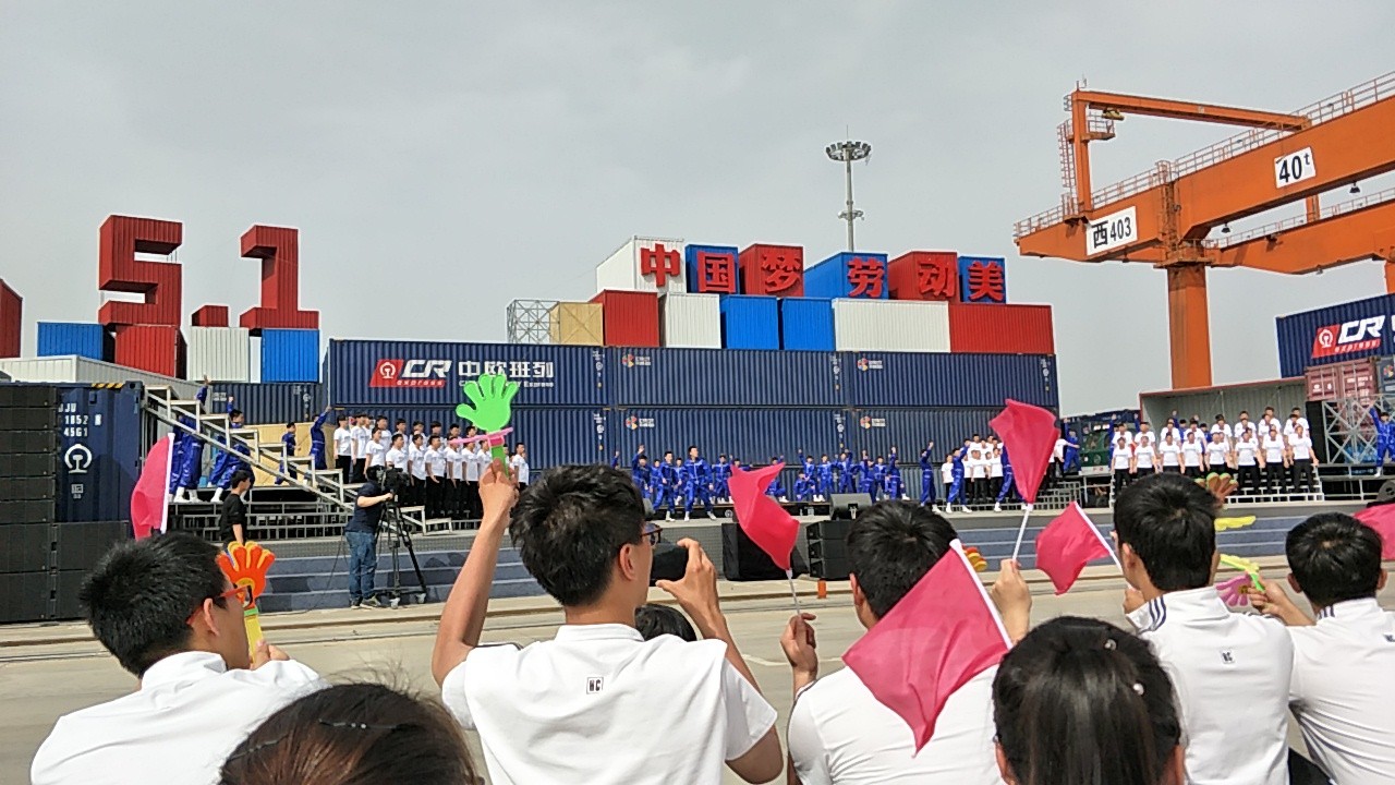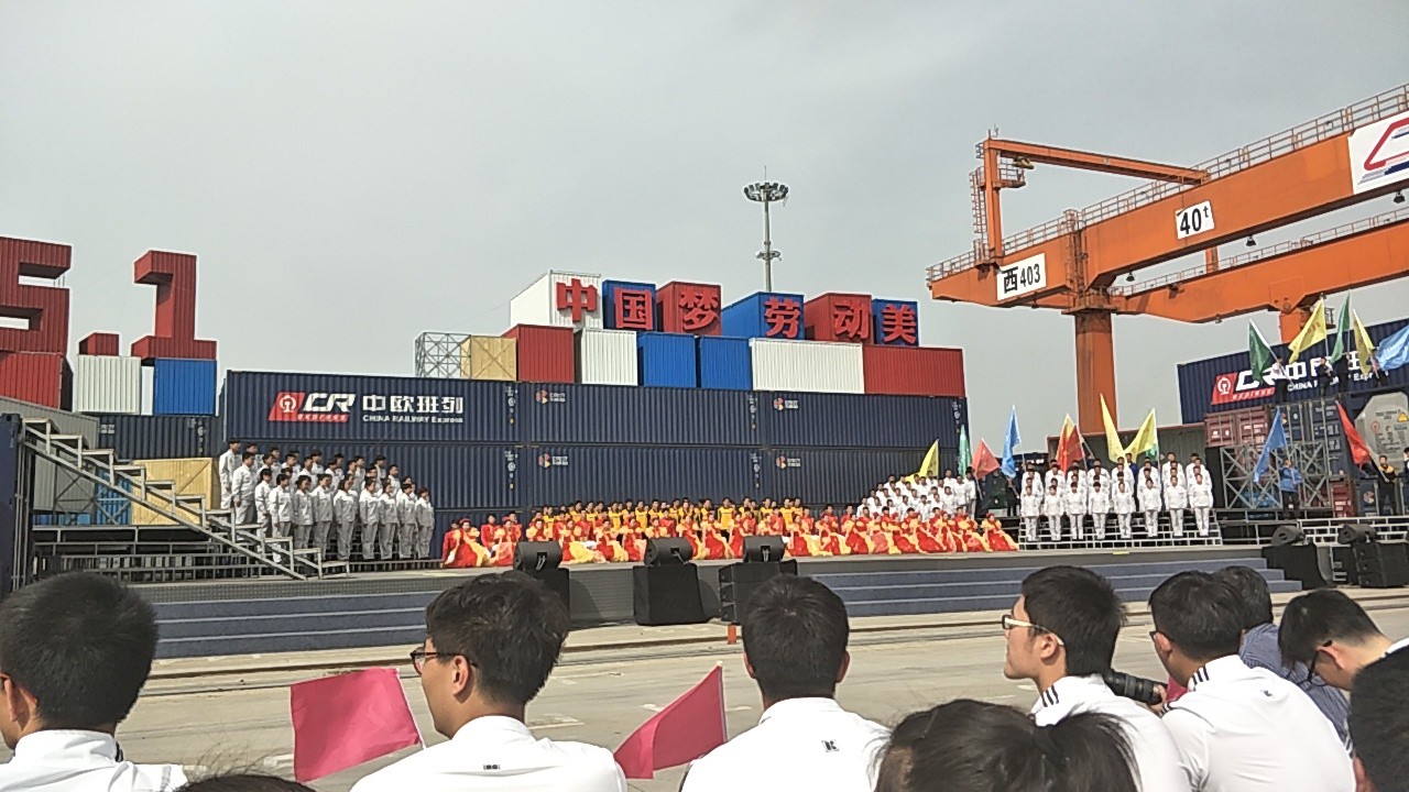 4月18日下午,2017年心连心“中国梦 劳动美”五一分会场在国际港务区中欧班列始发站内录制。两台气势磅礴的龙门吊车徐徐升起,央视五一国际劳动节心连心特别节目西安分会场录制正式开始。演出舞台搭建在国际港务区中欧班列始发站内,背景用集装箱搭建而成,一辆火车头当做移动平台,淋漓尽致展现了内陆港的精气神。为配合节目演出,台下西安铁路局各个机务段职工组成的各色方阵摇旗呐喊,庆祝属于劳动者自己的节日。