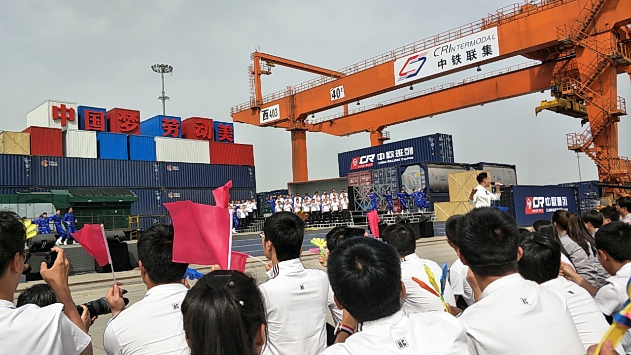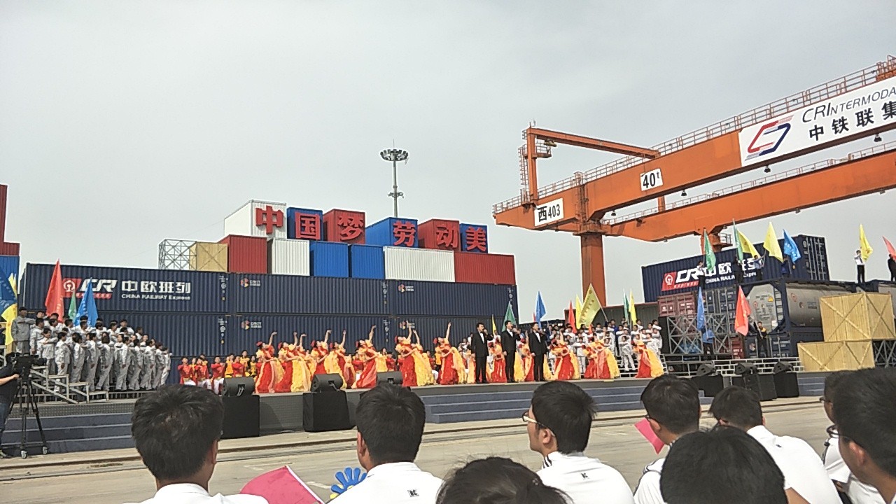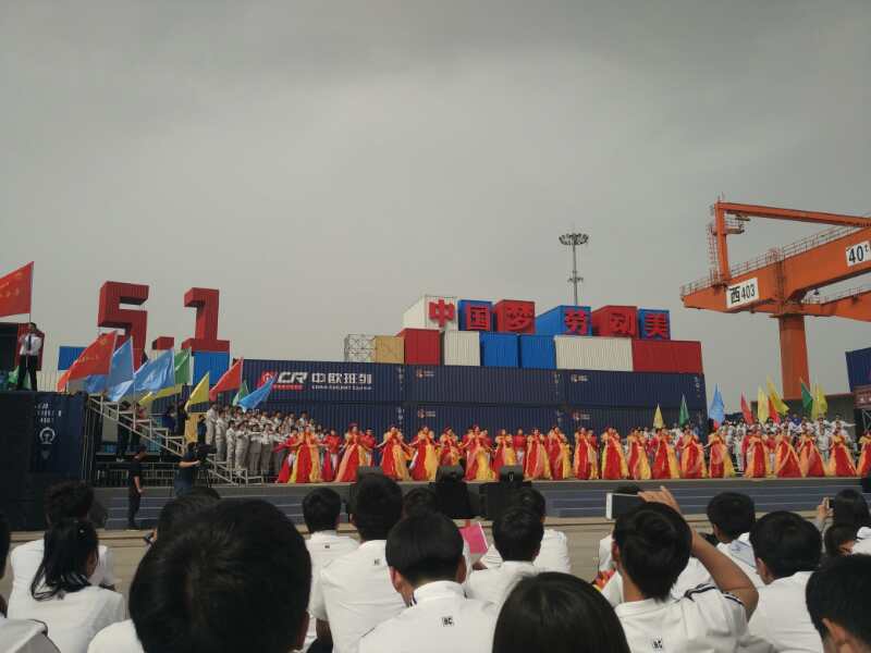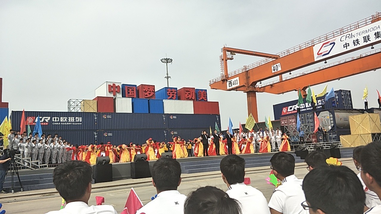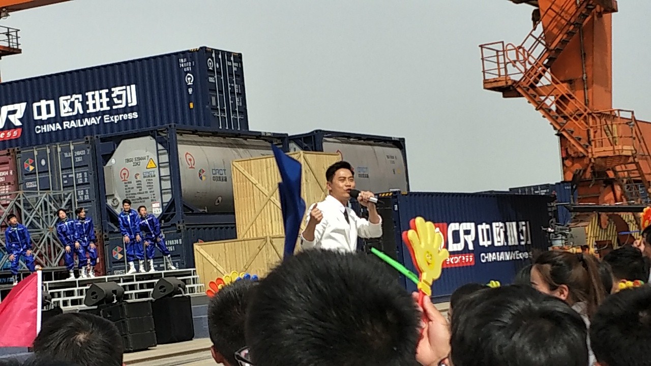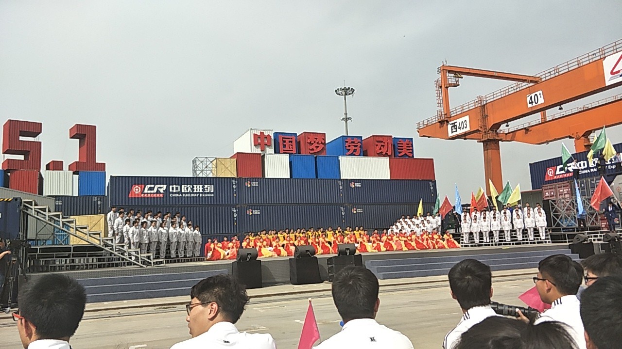 4月18日下午,2017年心连心“中国梦 劳动美”五一分会场在国际港务区中欧班列始发站内录制。两台气势磅礴的龙门吊车徐徐升起,央视五一国际劳动节心连心特别节目西安分会场录制正式开始。演出舞台搭建在国际港务区中欧班列始发站内,背景用集装箱搭建而成,一辆火车头当做移动平台,淋漓尽致展现了内陆港的精气神。为配合节目演出,台下西安铁路局各个机务段职工组成的各色方阵摇旗呐喊,庆祝属于劳动者自己的节日。