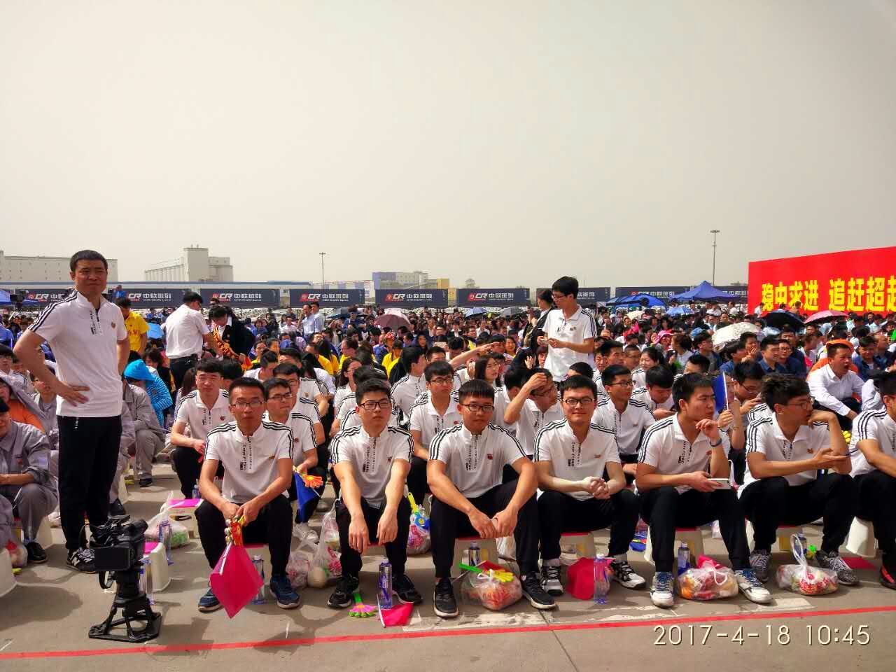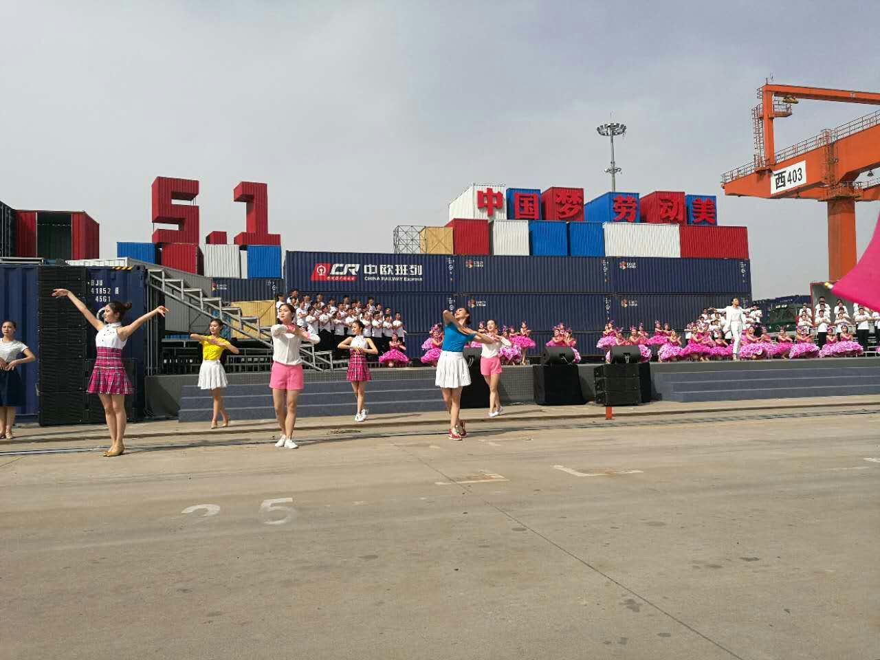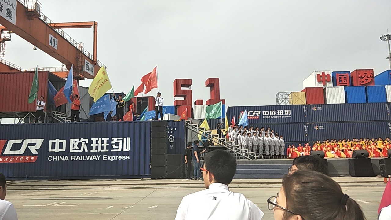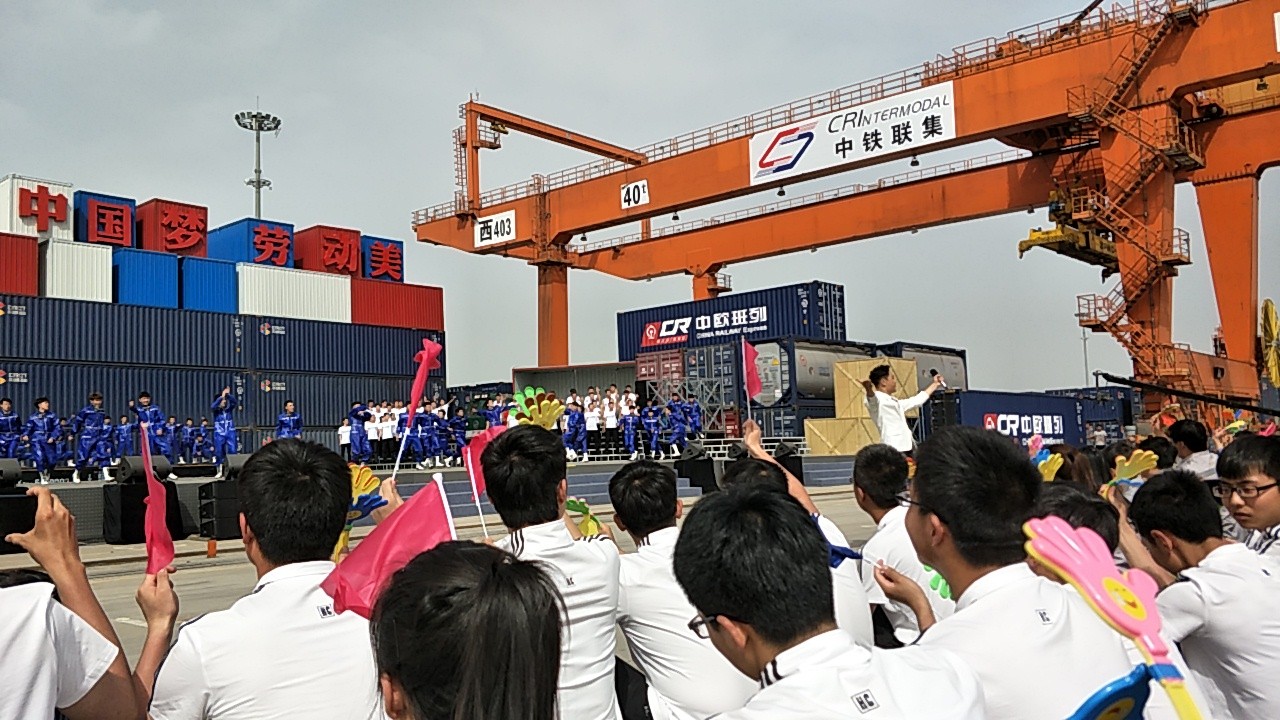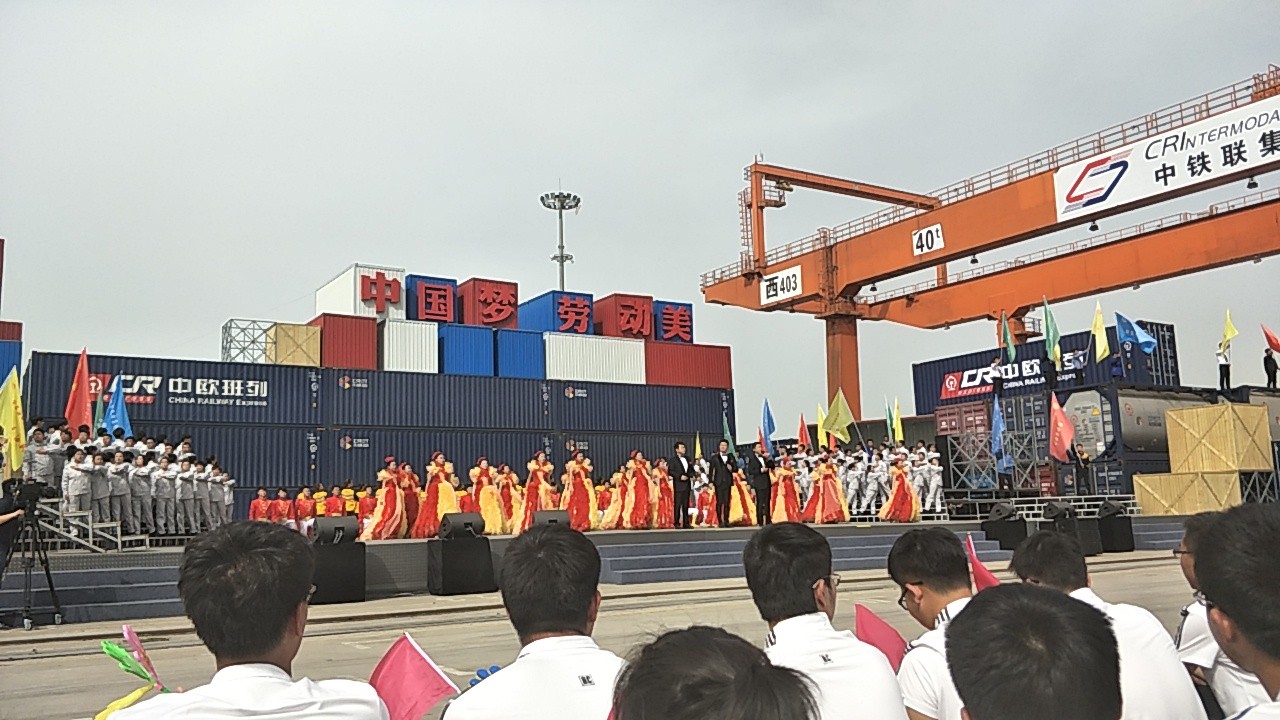 4月18日下午,2017年心连心“中国梦 劳动美”五一分会场在国际港务区中欧班列始发站内录制。两台气势磅礴的龙门吊车徐徐升起,央视五一国际劳动节心连心特别节目西安分会场录制正式开始。演出舞台搭建在国际港务区中欧班列始发站内,背景用集装箱搭建而成,一辆火车头当做移动平台,淋漓尽致展现了内陆港的精气神。为配合节目演出,台下西安铁路局各个机务段职工组成的各色方阵摇旗呐喊,庆祝属于劳动者自己的节日。