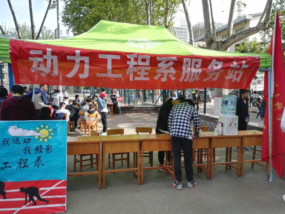 2017年4月21日,beat365英国官方网站举行2017年春季田径运动会。为了确保运动会的顺利进行,动力系团总支召集志愿在篮球场位置处设立了“运动会系团服务站”。秉着“有时间做志愿者,有困难找志愿者”的理念,大家都拼尽全力为此次运动会保驾护航。