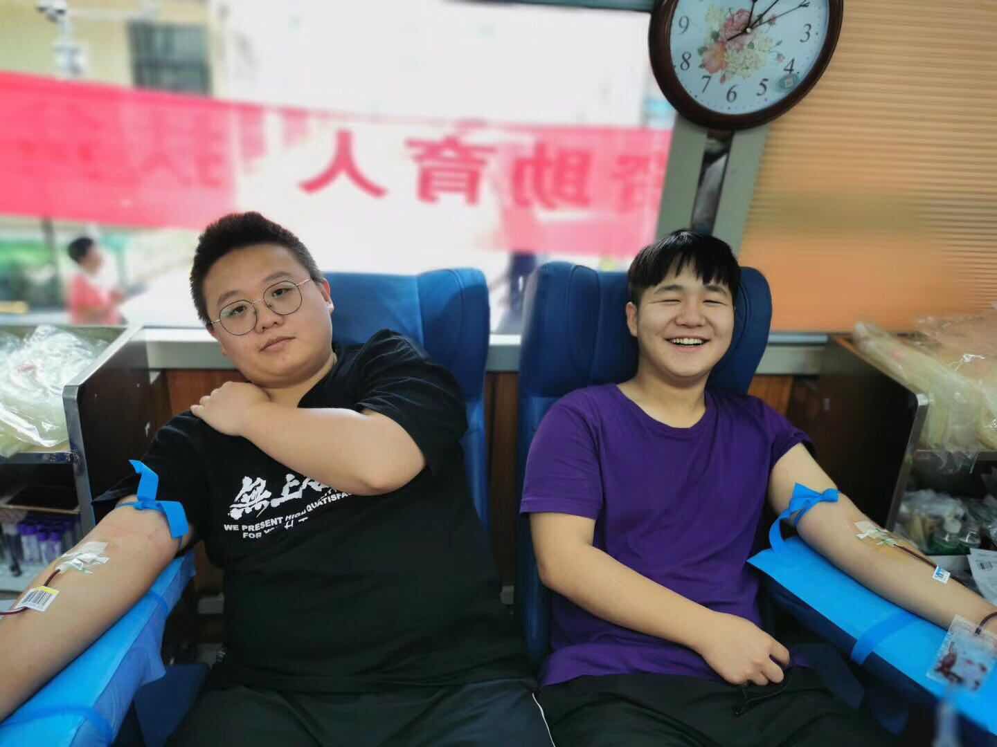 我们志愿者分成好几个小组,有的为同学们答疑解惑,有的引导着要献血的同学填表验血,有的给献过血的同学发放纪念品。在我校各组青协志愿者和医护人员的共同努力下献血活动有条不紊的进行着。那一滴滴鲜红的血液灌满了一个又一个血袋,就好像同学们一点一滴的爱心汇聚在一起。这些血液,这些爱心汇聚在一起,它们会在祖国其他同胞的身上流淌。这种力量是伟大的,是充满了生命力的,是可以拯救一条鲜活的生命的。