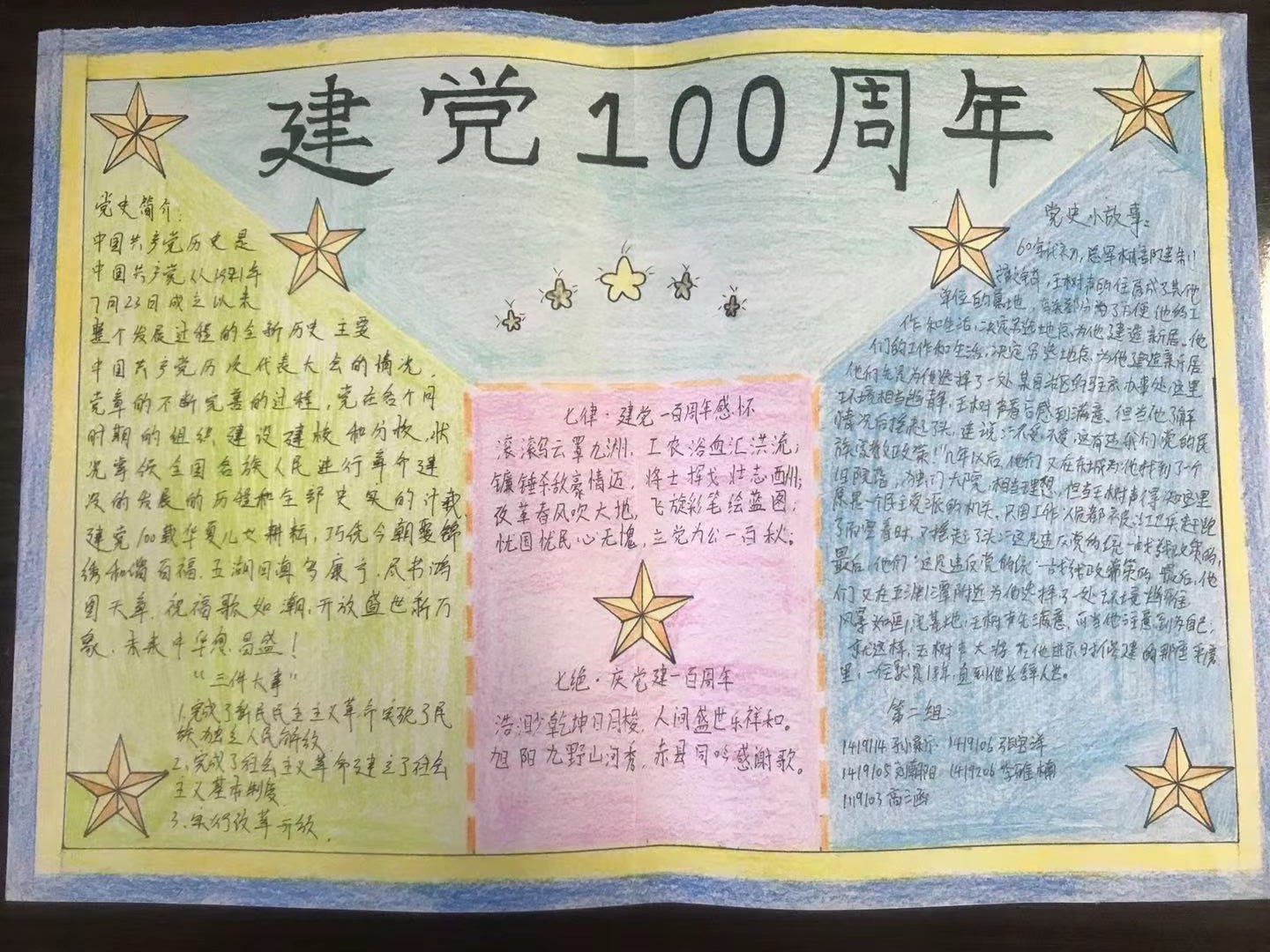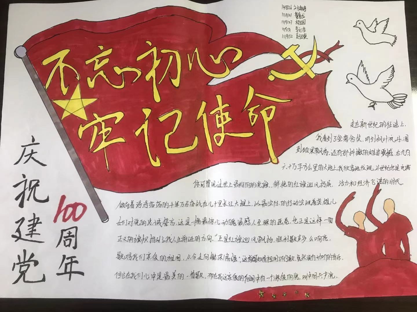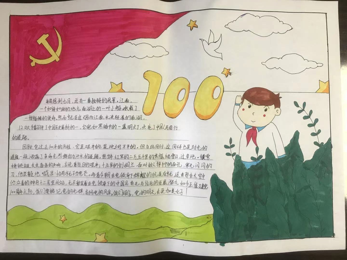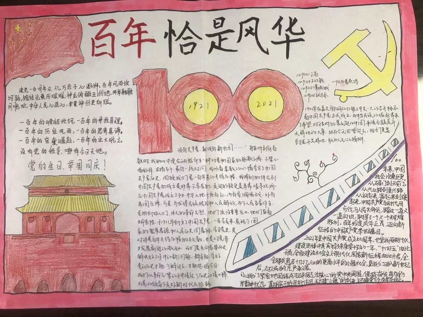 为隆重庆祝中国共产党成立100周年,重温党的光辉历史,进一步培养学生爱国情怀,展现积极向上的精神风貌,学校青马班学生在思政部教师和团委的支持和指导下,开展了庆祝中国共产党成立100周年主题手抄报活动。