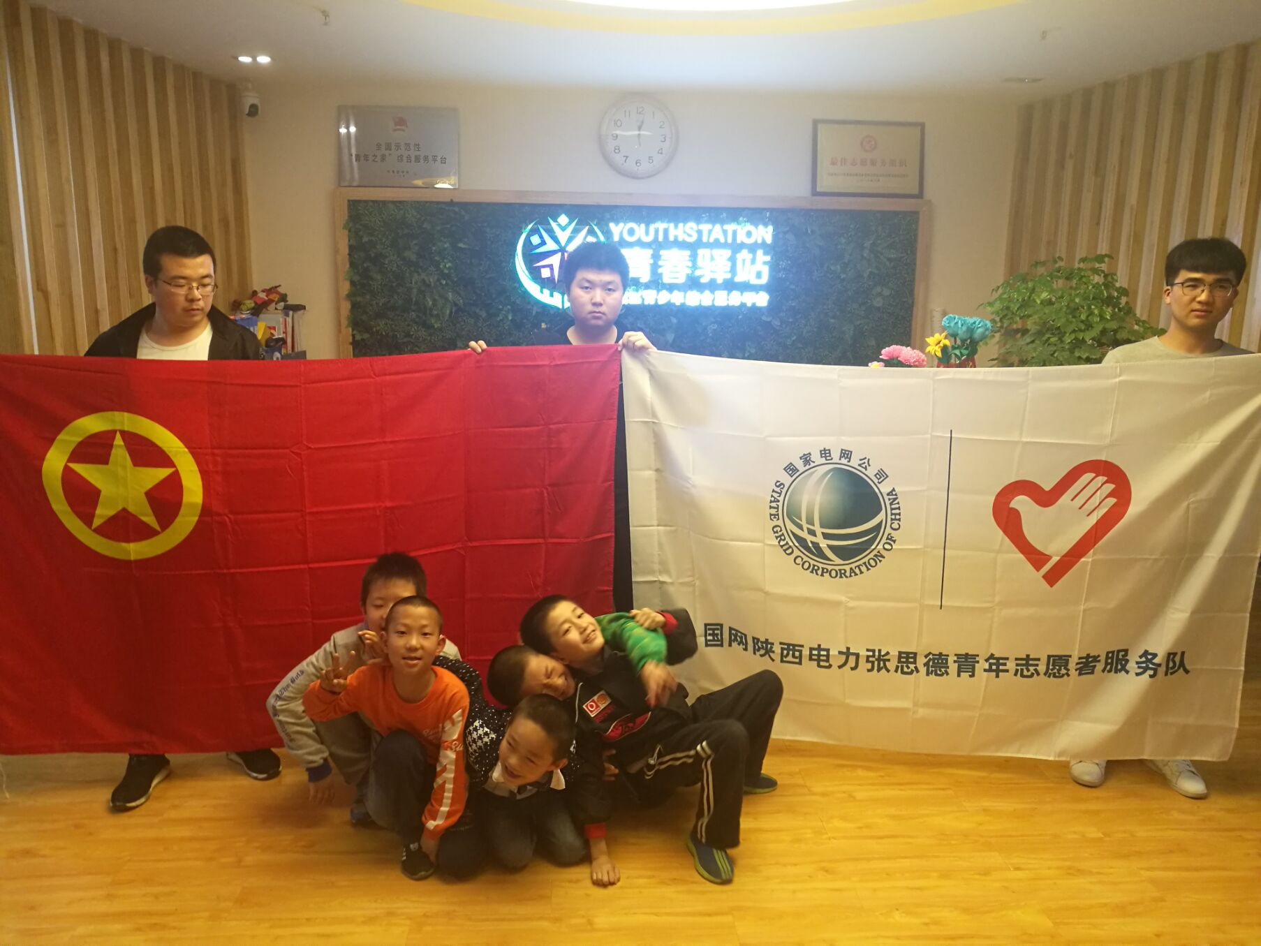 9:10 我校志愿者到达青春驿站,受到工作人员和小朋友们的热烈欢迎。