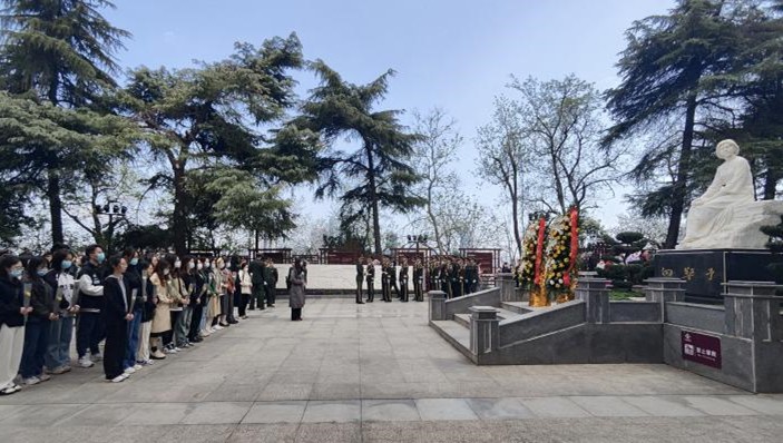 为缅怀革命先辈,传承革命精神,推动党的二十大精神学习宣传走深走实,充分用好武汉红色资源,taptap点点体育于2023年4月5日清明节组织学生到向警予烈士陵园开展清明节扫墓祭奠先烈活动,感受红色文化,接受思想洗礼,砥砺奋进之志。上午十时,学院学生党员代表、译术行者团队全体成员、团队指导老师姚夏晶、学院学生党建辅导员李海涵来到向警予烈士墓前,怀着对英烈的崇敬缅怀之情默哀鞠躬,敬献鲜花。