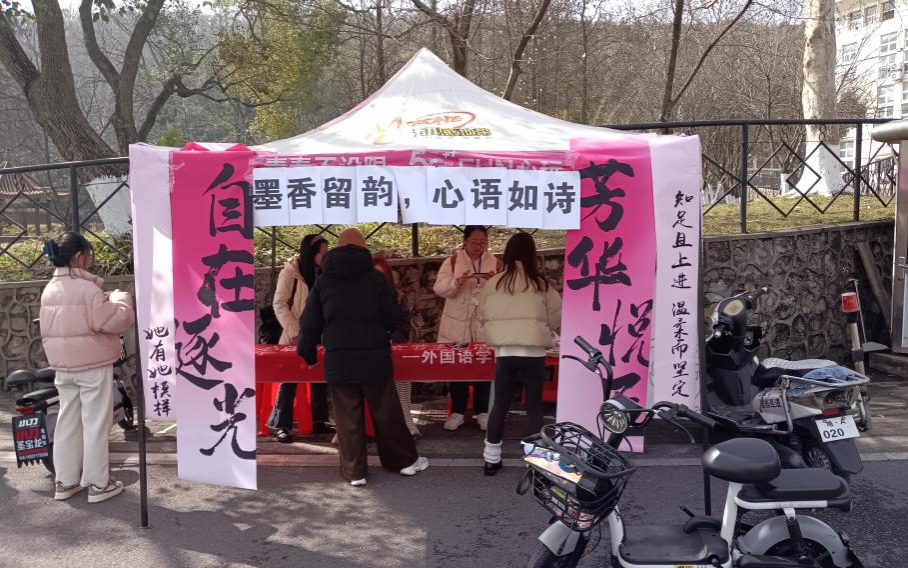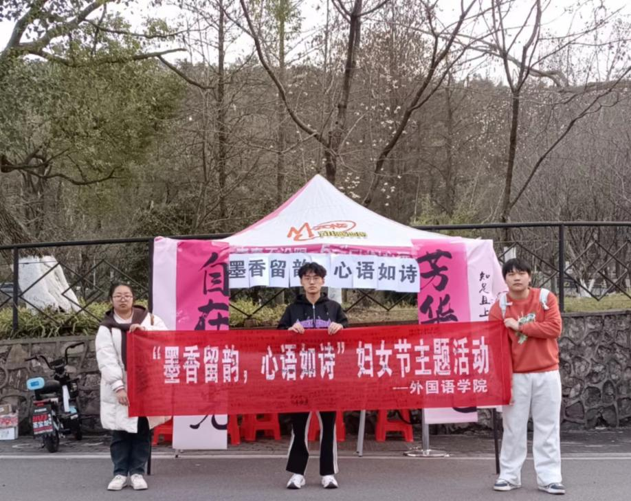 活动横幅上,马克笔的轻盈滑动留下了珍贵的祝福和留言,宛如一首首悠扬的诗歌,在春风细雨中流传永恒。“天天开心,万事顺意”、“无畏世俗,从容自信”、“前途似海,来日方长”.......同学们用心书写的期许与祝福,字字句句都饱含着无限的期待与美好的节日祝愿。老师们也和同学们一起参与这次活动,一同传播着节日的爱与祝福。