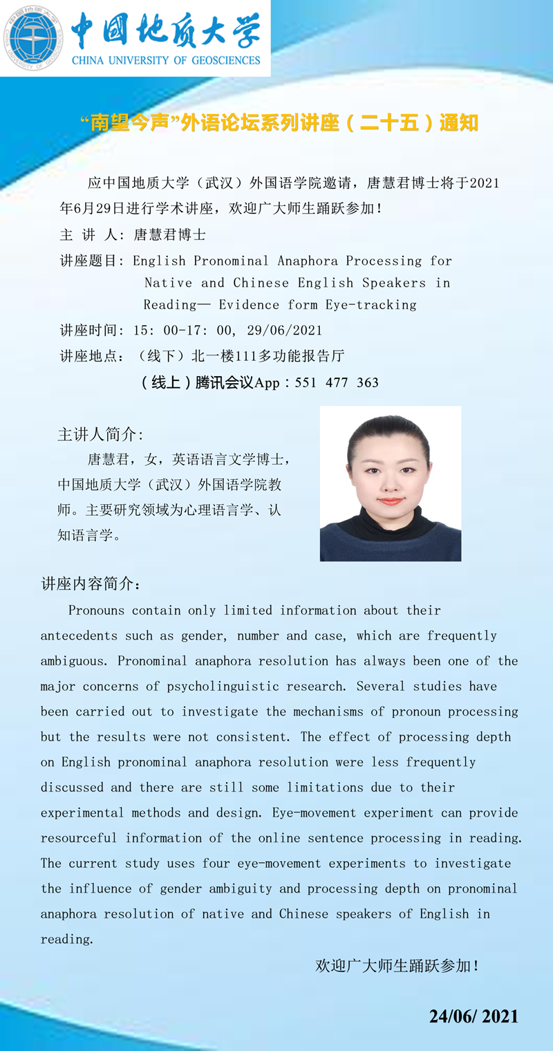 “南望今声”外语论坛系列讲座(二十五)通知
