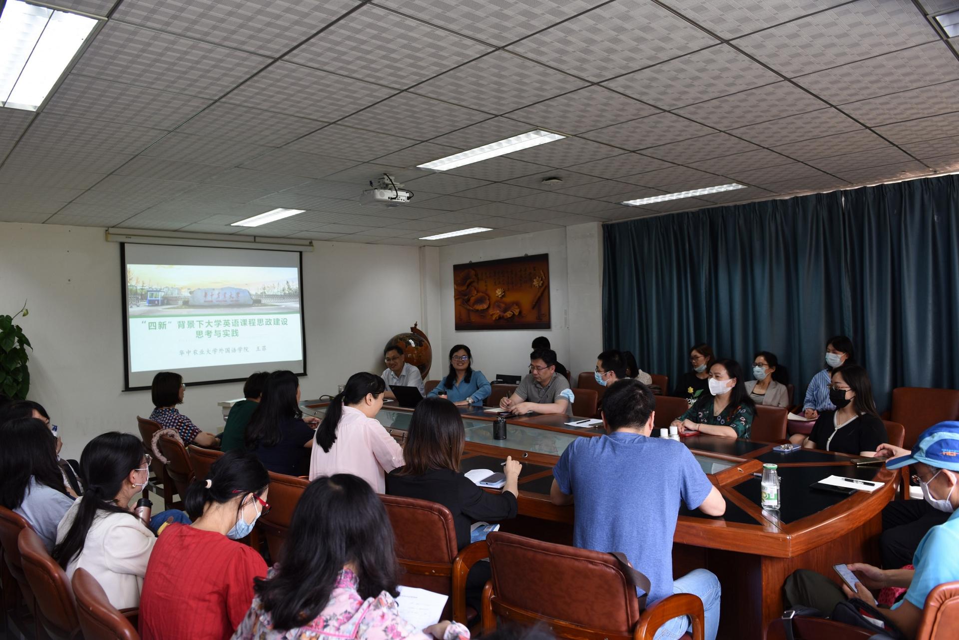 报告结束后,王老师与教师们就课程思政建设、大学英语教学改革、英语第二课堂建设等进行了交流。