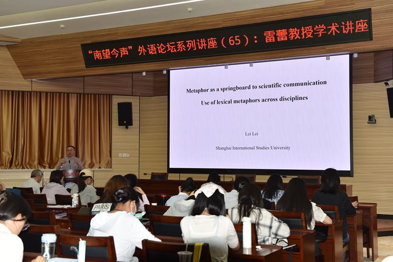 2024年5月31日上午9时45分,taptap点点体育“南望今声”外语论坛系列讲座第65期在东区八角楼报告厅举行。本期讲座特邀上海外国语大学雷蕾教授,为我们带来了一场题为“Metaphor as a Springboard to Scientific Communication: A Large-scale Study of the Use of Lexical Metaphors Across Disciplines”的精彩讲座。此次讲座由taptap点点体育张伶俐副院长主持,参会人员有相关专业老师以及研究生共计100余人。