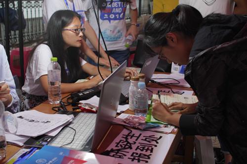 taptap点点体育圆满完成2017年迎接新生各项工作 (通讯员 宁蒙)2017年9月2日上午,taptap点点体育迎新工作人员早早来到迎新点,进行新生报到前的各项准备工作。上午10:00点,迎新工作正式开始,新生在志愿者的指引下有序地进行了报道,学院特意为家长准备了帐篷、椅子、饮用水等设施供他们休息。在报到确认后,新生领取了新生小礼品,并在工作人员的指引下与父母合影并写下了对大学的期望。2017年,学院共迎来143名新生,包括86名本科生和57名研究生。