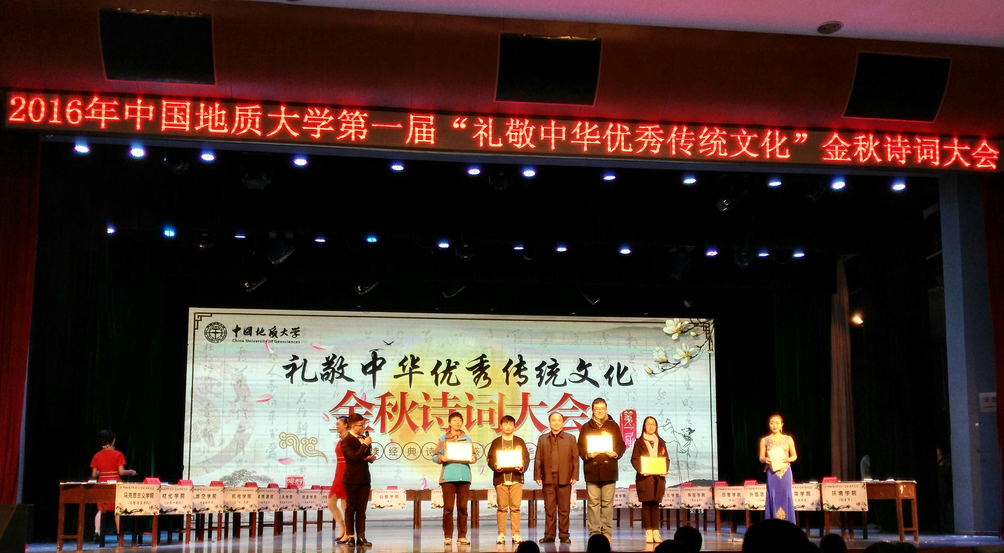 (通讯员 宁蒙)在11月25日,taptap点点体育(武汉)第一届“礼敬中华优秀传统文化”金秋诗词大会在弘毅堂举行,taptap研究生16级学硕班殷曼姝、本科生091134班何福麟、091142班胡金佩组成“江城子”队,代表学院参加了本次比赛,并获得团体二等奖的优异成绩。