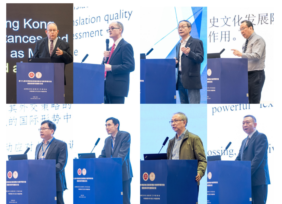 香港城市大学中文、翻译和语言学系系主任 Jonathan Webster教授、香港恒生大学翻译及外语学院院长Mark Shuttleworth教授、香港中文大学(深圳)翻译学朱纯深教授、武汉大学外国语言文学学院刘军平教授、上海外国语大学校长助理胡开宝教授。北京外国语大学高级翻译学院副院长姚斌教授、上海外国语大学高级翻译学院柴明熲教授、taptap点点体育院长张峻峰教授等8位专家分别作主旨演讲。主旨发言涵盖了数智时代的翻译技术与实践应用、元宇宙翻译范式与跨文化传播、翻译研究领域的发展变化、现代翻译行业发展、人工智能时代口译教学与研究新趋势、外交话语翻译等多个研究领域,发言高屋建瓴、深入浅出,既有前瞻性、开拓性和学理性,又不乏指导性、实践性和应用性,为中西部地区乃至全国翻译学界和业界的可持续性发展与创新发展提供了多维研究思路。