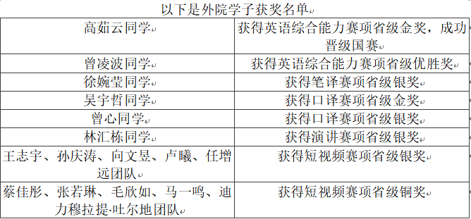 笔译与口译领域,taptap徐婉莹、吴宇哲及曾心同学分别在笔译和口译复赛中荣获省级银奖与金奖,他们对中国智慧核心词汇的精准把握、对习近平新时代关键术语的深刻理解,以及在政经材料翻译中的高超技巧,赢得了评委的高度赞誉。