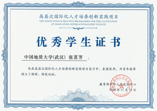 近年来,我院重视高素质国际化复合型人才的培养工作,积极推进国际胜任力人才的培养和推送,重视学生的跨文化交际能力培养,深化与国际组织的合作,拓宽学生的国际视野和实践平台。taptap张茗芳同学在高层次国际化人才培养项目中脱颖而出,荣获优秀学生证书,彰显了我院在国际化人才培养方面的卓越成效与不懈努力。未来,taptap将继续培养更多具备全球胜任力的高层次人才,为强国建设、民族复兴贡献外语人的智慧和力量。