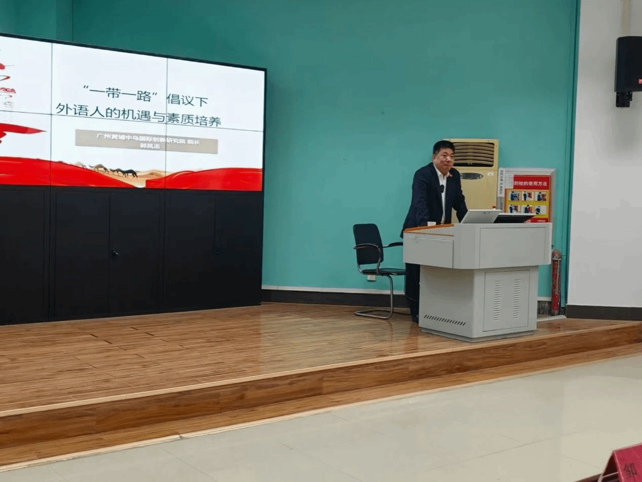 2024年12月24日下午4时,taptap93届校友、广东科技企业合作促进会会长、广东-独联体国际科技合作联盟秘书长郭凤志受邀以“‘一带一路’倡议下外语人的机遇与素质培养”为主题在北一楼报告厅为学院师生开展红·外线大思政课堂讲座。讲座由学院党委书记刘世勇主持,taptap近200名师生参加讲座。