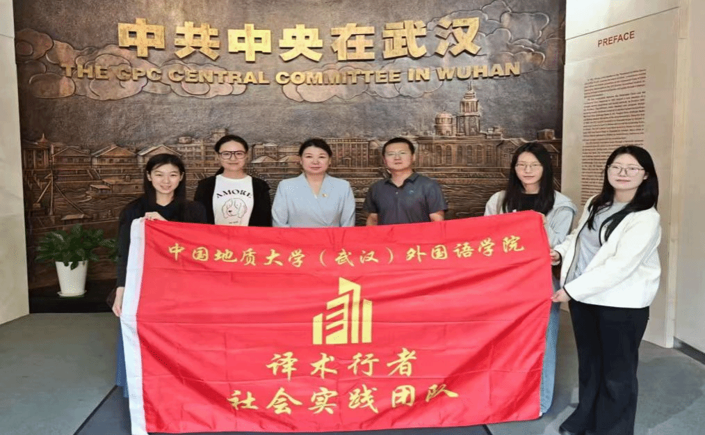 团队师生在讲解志愿者的带领下走进展馆,通过珍贵文物与历史影像资料,深入了解了中共中央机关在武汉期间的革命斗争历程。讲解内容详实生动,沉浸式的学习体验不仅激发了同学们深厚的爱国情怀,也加深了他们对红色文化内涵及其时代价值的理解与认同。在队员们看来,把历史讲给世界听、把故事讲出温度,正是“译术行者”团队肩负的使命与担当。