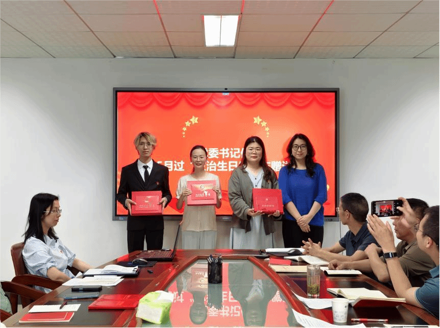 学院党委书记傅苑为五月过“政治生日”的党员送上贺卡。一张贺卡,一份初心!她寄语青年党员无论走得多远,都能不忘来时路,牢记初心使命。