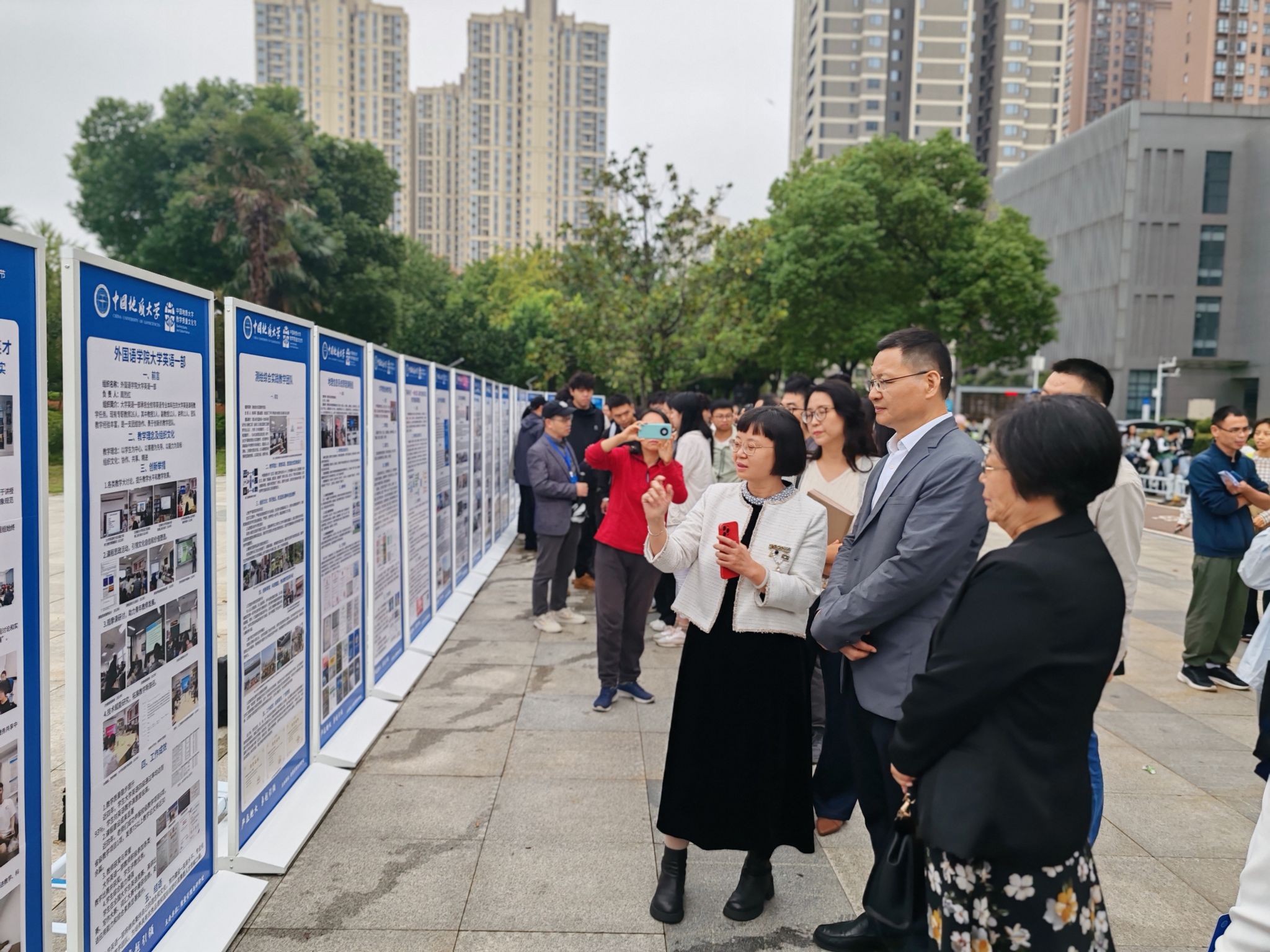 校党委书记刘杰、副校长章军锋先后莅临taptap点点体育展区,认真听取团队成员介绍,细致审阅展示材料,并围绕外语教学中的课程思政融入、跨文化交际能力培养等关键内容进行深入了解,还结合学院学科特色与发展实际,针对专业核心课程体系建设、教学质量精细化把控与团队成员展开讨论并给予精准指导。
