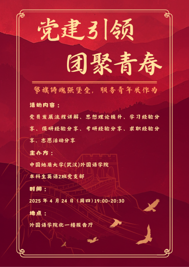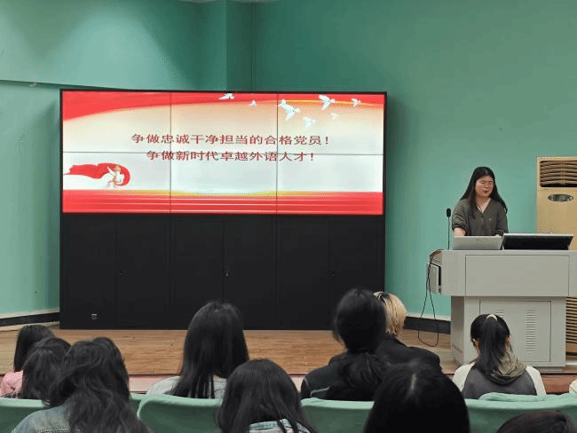 2025 年 4 月 24 日晚 19:00至20:30,taptap点点体育本科生英语2班党支部于北一楼报告厅举办 “擎旗铸魂强堡垒,服务青年展作为——党建引领・团聚青春”主题联动大会。本次活动以强化党建带动团建作用、服务青年成长为核心,通过理论学习、经验分享等形式,凝聚青年力量,筑牢思想根基。本2支部党员代表及2024级全体本科生共同参与。